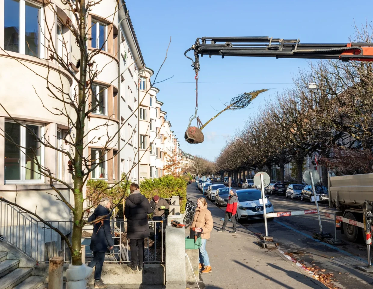 In der Stadt gibt es ein ungenutztes Flächenpotenzial für die Pflanzung von Bäumen: Grundstücke in Privatbesitz zwischen dem Gebäude und der Strasse, die «Vorgärten». mein Baum wird dein Baum.