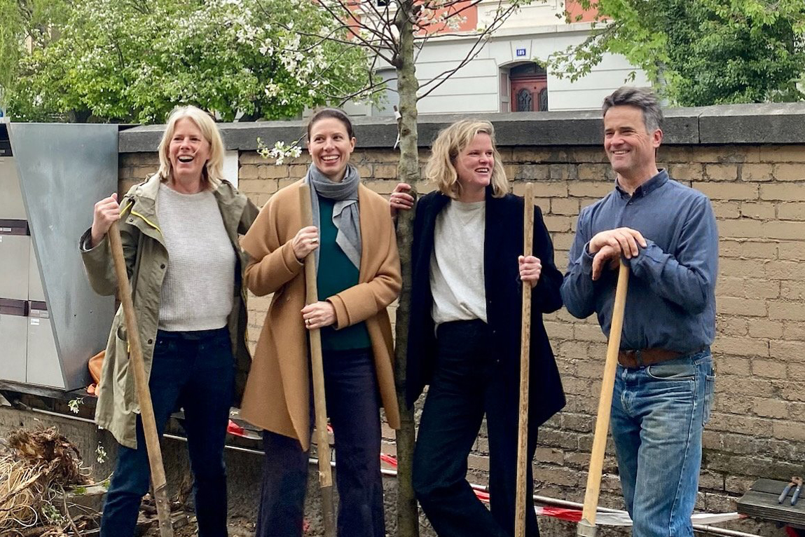Bei der Gründung von mBdB schlossen sich die beiden mit Sara zusammen, die durch ihre 12-jährige Tätigkeit bei der Stadtbildkommission und als selbständige Architektin ein grosses Wissen über die Anforderungen im öffentlich wirksamen Stadtraum mitbringt. Caspar vervollständigt das Team. Mit vielen Jahren Erfahrung als Gärtner koordiniert er die Logistik und verfügt über das erforderliche Know-how jährlich über 50 Bäume in einer Vielzahl von Vorgärten zu pflanzen.
